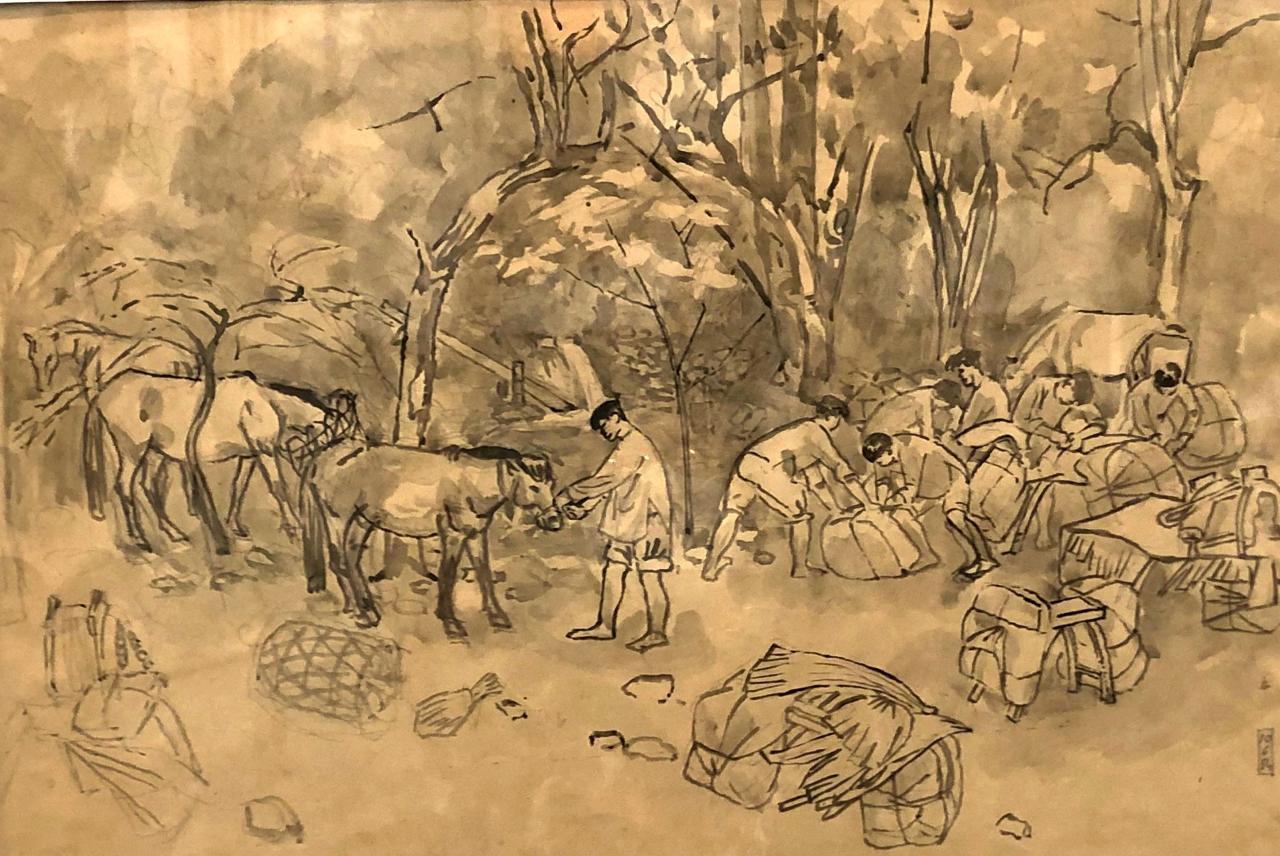 “Cho ngựa ăn”, ký họa của Tô Ngọc Vân.