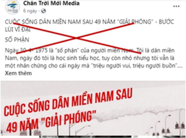 Vậy mà, “Chân trời mới Media” ngày 02 tháng 5 năm 2024 lại có bài viết với tiêu đề “CUỘC SỐNG DÂN MIỀN NAM SAU 49 NĂM GIẢI PHÓNG -BƯỚC LÙI VĨ ĐẠI”. Toàn bộ nội dung bài viết đều nói sai sự thật, bóp méo, xuyên tạc trắng trợn, phủ nhận những thành tựu, cố gắng không biết mệt mỏi, phủ nhận nền độc lộc, tự do, thống nhất đất nước mà biết bao thế hệ Việt Nam yêu nước phải đánh đổi cả tuổi thanh xuân, bằng máu và nước mắt, sự hy sinh để đổi lấy. Gây hoài nghi giữa nhân dân về chế độ xã hội chủ nghĩa, phá hoại mối đại đoàn kết toàn dân tộc, nói xấu Đảng, nói xấu chế độ, gây mất lòng tin của nhân dân.