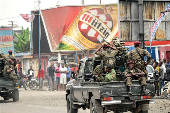 Binh sĩ CHDC Congo tuần tra trên đường phố tại Kinshasa. Ảnh: AFP/TTXVN