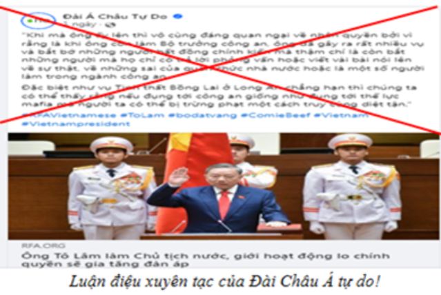 Theo đó, trong ngày 24/5/2024, trên trang facebook cá nhân, các nhà rân chủ của đài Á châu tự do tiếp tục đăng đàn giật tít “Ông Tô Lâm làm chủ tịch nước, giới hoạt động lo chính quyền sẽ gia tăng đàn áp”. Trong mấy dòng ngắn ngủi, ngắn như tầm nhìn và bộ óc của những nhà zân chủ nửa mùa này, RFA phán như đúng rồi, rằng “Khi mà ông ấy lên thì vô cùng đáng quan ngại về nhân quyền”. Không những thế, các “lều báo” còn giải thích một cách ngô nghê rằng “khi ông còn làm Bộ trưởng Công An, ông đã gây ra rất nhiều vụ và bắt bớ những người bất đồng chính kiến”. Với những lập luận mơ hồ và ngôn từ xảo biện, RFA cố tình đánh lận con đen khi tiếp tục khua môi múa mép rằng những kẻ bị bắt vì phạm pháp chỉ là người “trả lời phỏng vấn hoặc viết vài bài nói lên sự thật về những sai phạm của quan chức nhà nước”…. Không những thế, nhà đài Á châu còn dẫn vụ Tịnh thất Bồng Lai ở Long An để quy kết một cách vô cùng trắng trợn rằng “nếu đụng tới công an thì cũng giống như đụng tới thế lực mafia” và những kẻ phạm tội kia sẽ bị “trừng phạt một cách truy cùng diệt tận”.