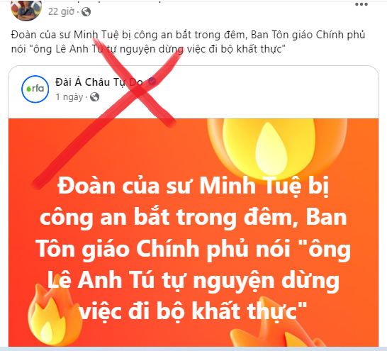 Những thông tin bịa đặt này hoàn toàn trái ngược với thực tế. Theo Ban Tôn giáo Chính phủ, ông Lê Anh Tú (tên thật của Thích Minh Tuệ) đã tự nguyện dừng việc đi bộ khất thực sau khi nhận thức được những nguy cơ tiềm ẩn cho bản thân và những người đi theo, đồng thời để đảm bảo an ninh trật tự và sức khỏe cộng đồng.