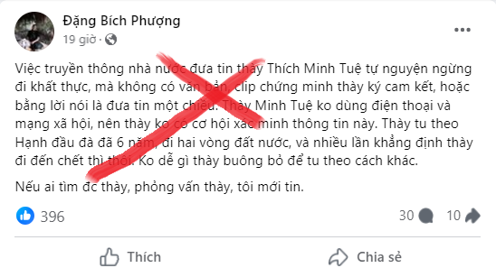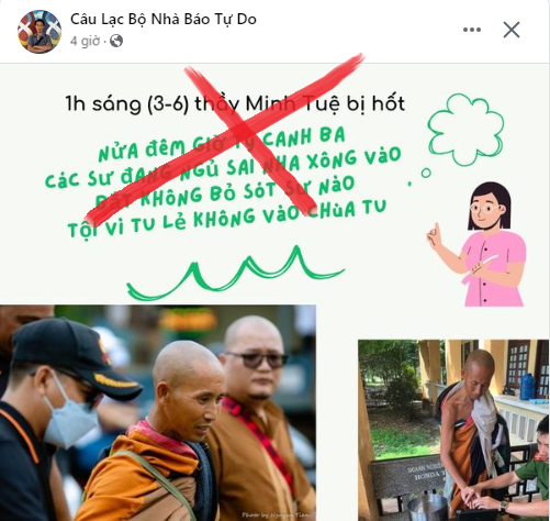Đáng lên án nhất là bà Đặng Bích Phượng, một người có tiền sử bất hảo, cùng với tổ chức mạo danh “Câu lạc bộ Nhà báo tự do”. Họ liên tục đăng tải những thông tin từ mập mờ để dẫn dắt dư luận theo hướng tiêu cực, đến công khai thong tin sai lệch, vu khống rằng chính quyền đã ép buộc ông Thích Minh Tuệ dừng đi bộ khất thực, thậm chí bị “hốt” giữa đêm, buộc làm căn cước công dân… Điểm chung nhất của những thông tin này đều không thể đưa ra được bất cứ bằng chứng nào.