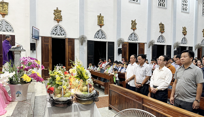 Các đồng chí lãnh đạo tỉnh, huyện và bà con giáo dân Thanh Thủy đã cùng nhau tưởng niệm, tri ân Tổng Bí thư, người con ưu tú của dân tộc, suốt một đời vì nước, vì dân.